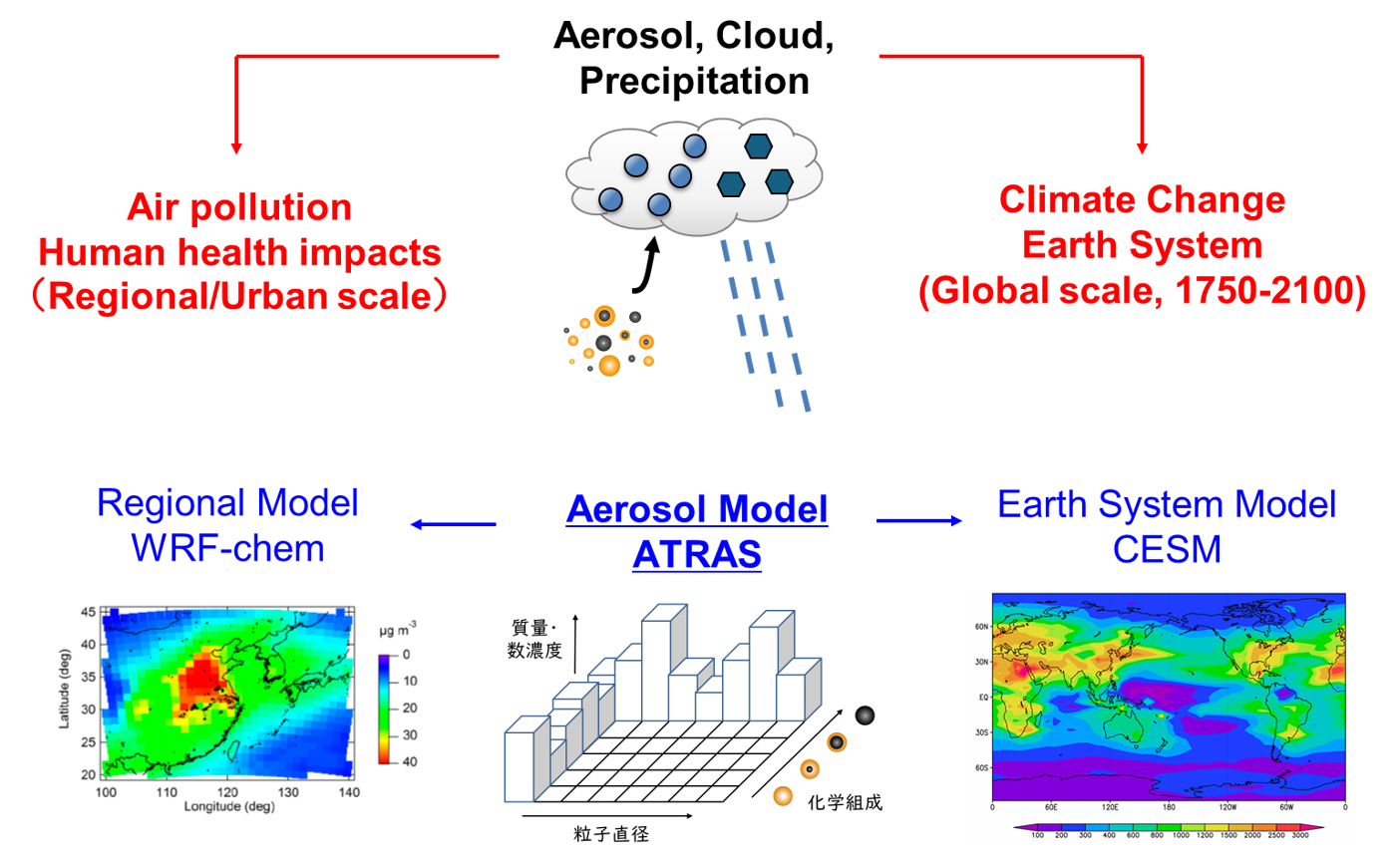 We have developed and applied a climate-aerosol model to understand the importance of such interactions between aerosols and radiation, cloud/precipitation processes, the cryosphere, and ocean/land biogeochemistry for the Earth's climate in the past, present, and future.